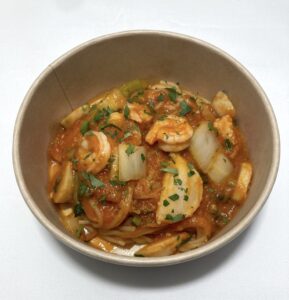 *有頭エビとタラのカルピオーネ・・・玉ねぎ、パプリカ、人参、ハーブ