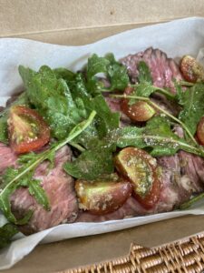C.牛サガリのタリアータ トマトとルッコラのサラダ
