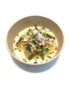 A.ブロッコリーとサーモンのクリームソース スパゲティ レモン風味